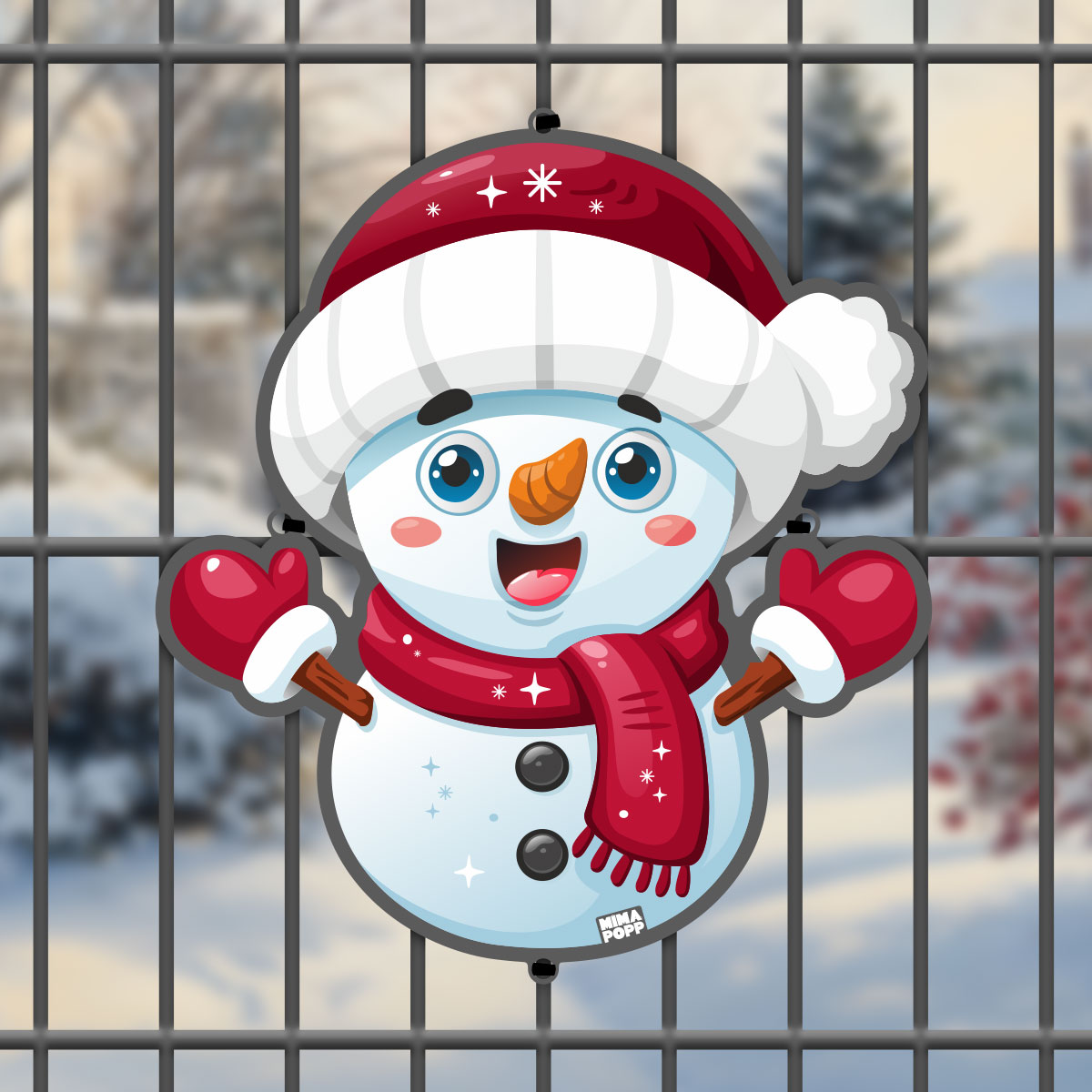 Schneemann Schorch kann dank der praktischen Montagelöcher einfach an Fenstern, Zäunen, Türen oder Wänden angebracht werden. Das Zubehör dafür findest du hier.